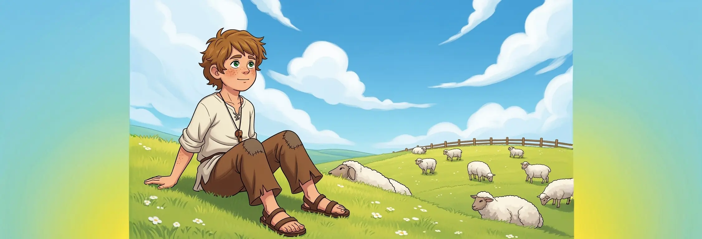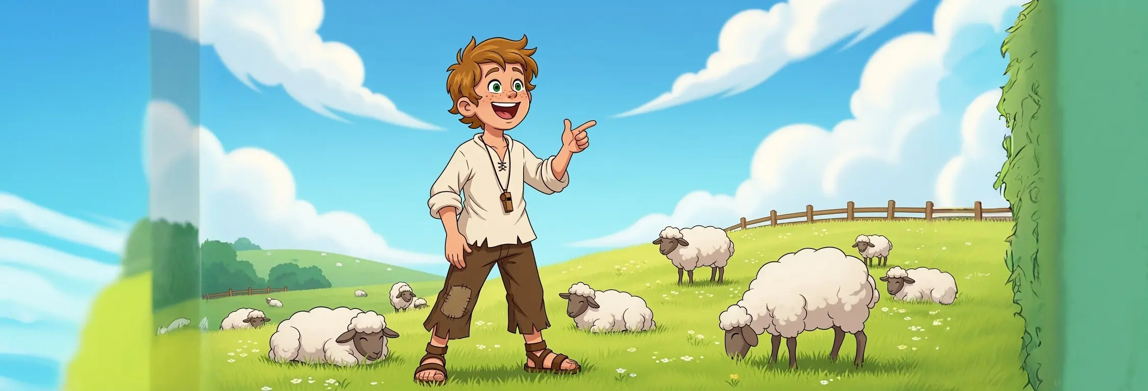 起初,男孩很喜歡這份工作。他看著小羊奔跑跳躍,還會吹口哨打發時間。但日子一久,他開始覺得無聊。看守羊群變得枯燥,身邊也沒有人可以玩耍。